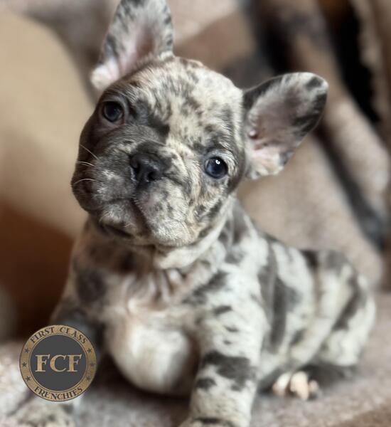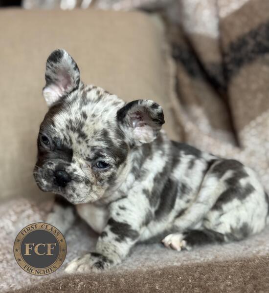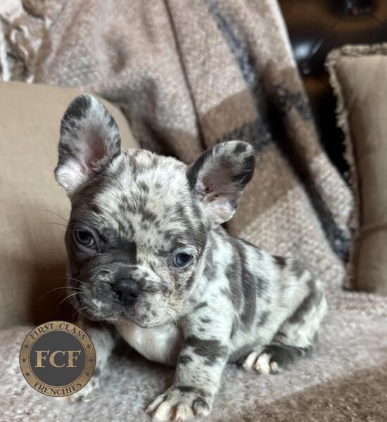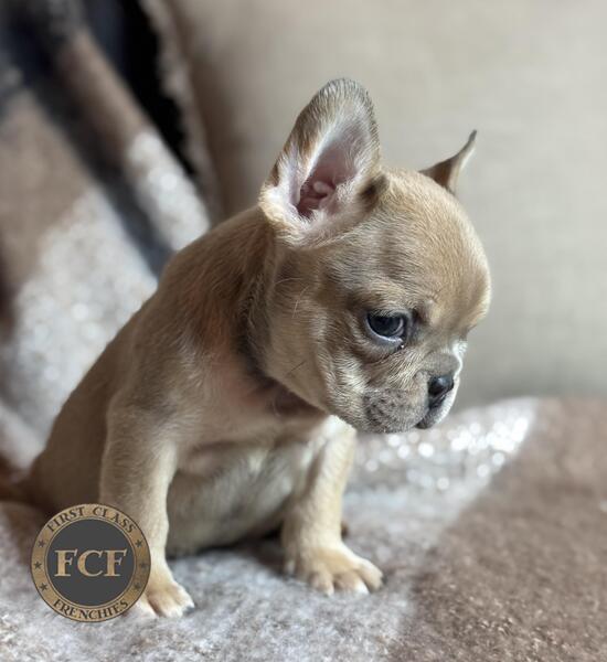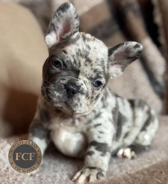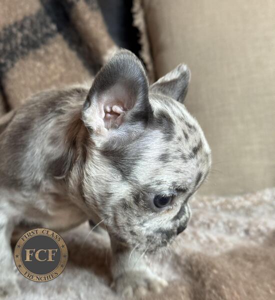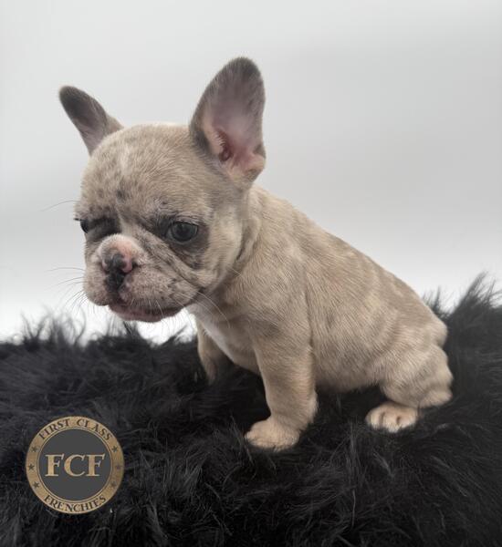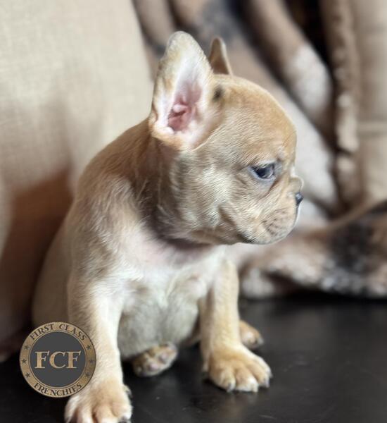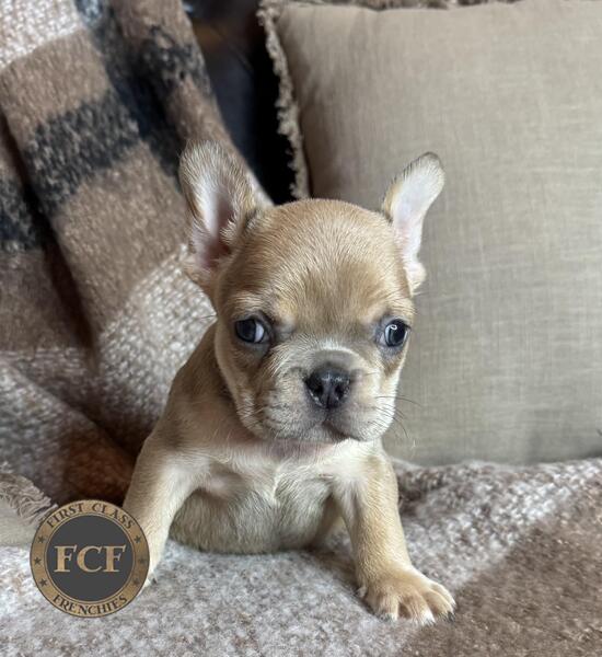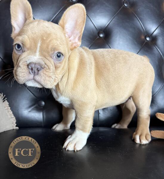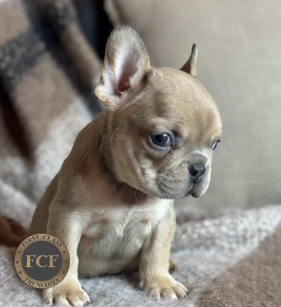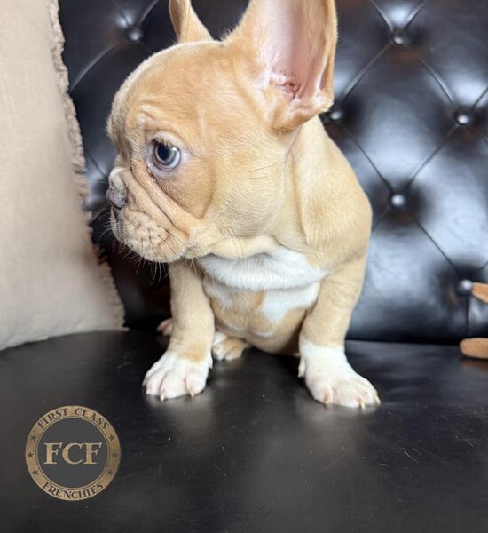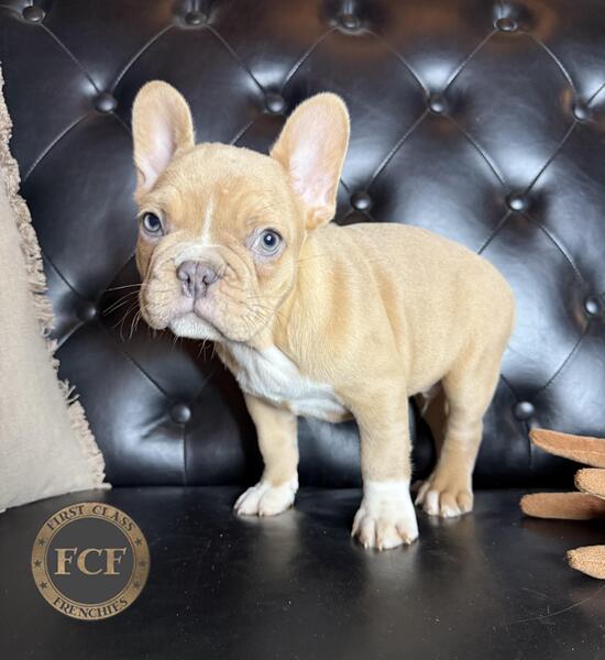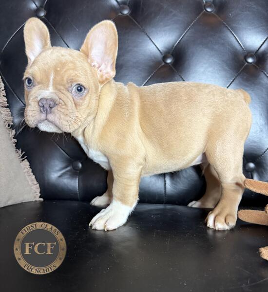 Look at those bright tan points on Abner! He is sooo pretty! He is calm and playful. He loves people and other pets. The perfect all around puppy. A great personality on such a nice looking puppy isn’t always easy to find. Let First Class Frenchies help you get 2025 off to a great start!