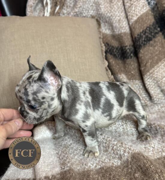 Nala is the perfect puppy! She loves people, always wants attention, and is very content to snuggle up to anyone she meets. She has a gorgeous splash of merle on her face and neck. We absolutely love this puppy! She is cute as a Frenchie puppy can be, with a personality that will steal your heart forever.