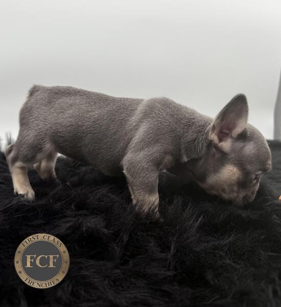 We really love our blue and tan frenchies, and Luca is a perfect example why. His tan points are so bright and perfect. His structure is amazing, and his personality is the icing on the cake. Keep our website handy because when you walk this pretty boy down the street, you are gonna get lots of people asking you where you got him. He will be beautiful and have a wonderful personality. What more could you ask for.
